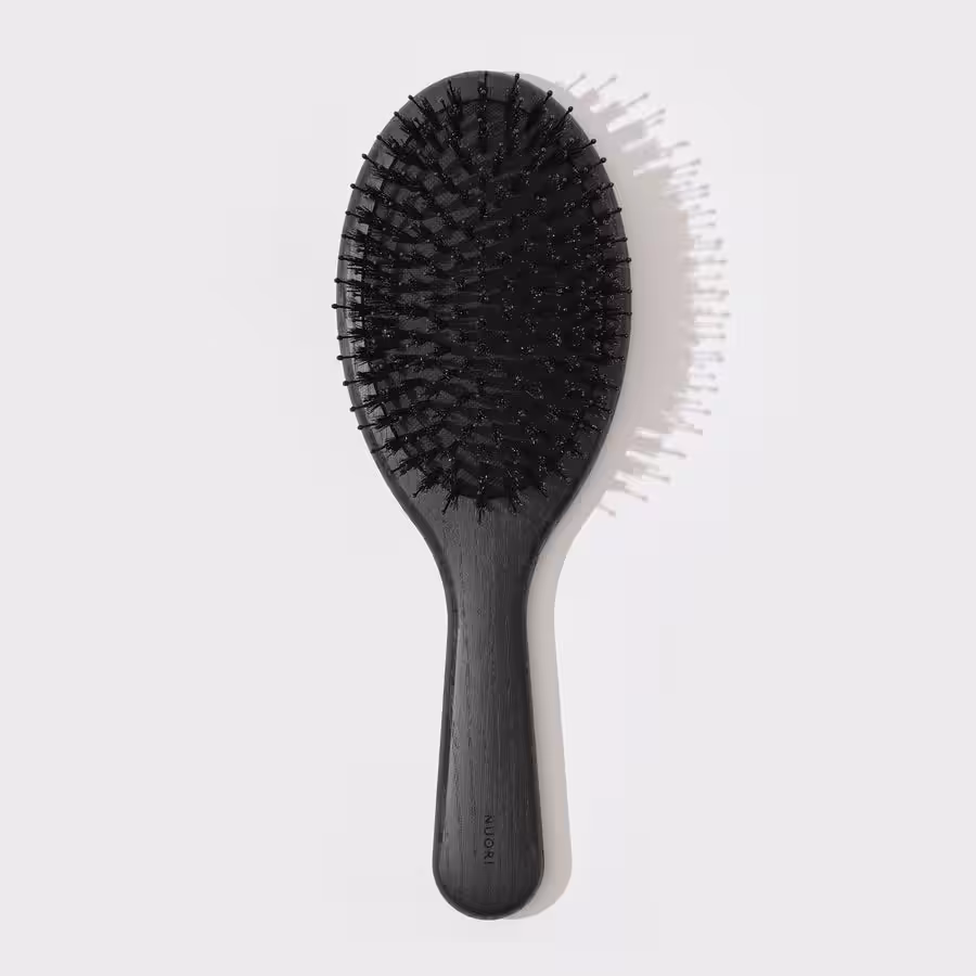 Miękka, wyściełana szczotka o mieszanym włosiu umożliwia rozczesywanie, stylizację i pielęgnację włosów, aby uzyskać piękny, zdrowy efekt. Nylonowe kępki o zaokrąglonych końcach delikatnie masują i stymulują skórę głowy oraz skutecznie rozczesują włosy, jednocześnie zapobiegając ich wyrywaniu. Włosie z dzika rozprowadza naturalne olejki ze skóry głowy przez włosy i pomaga zwalczać elektryzowanie się włosów i puszenie. Olejki zapewniają również dodatkową ochronę i połysk każdemu kosmykowi włosów. Skutecznie rozczesuje wszystkie długości włosów, nawet bardzo długie kosmyki. Nadaje się do włosów grubych i średniej grubości.