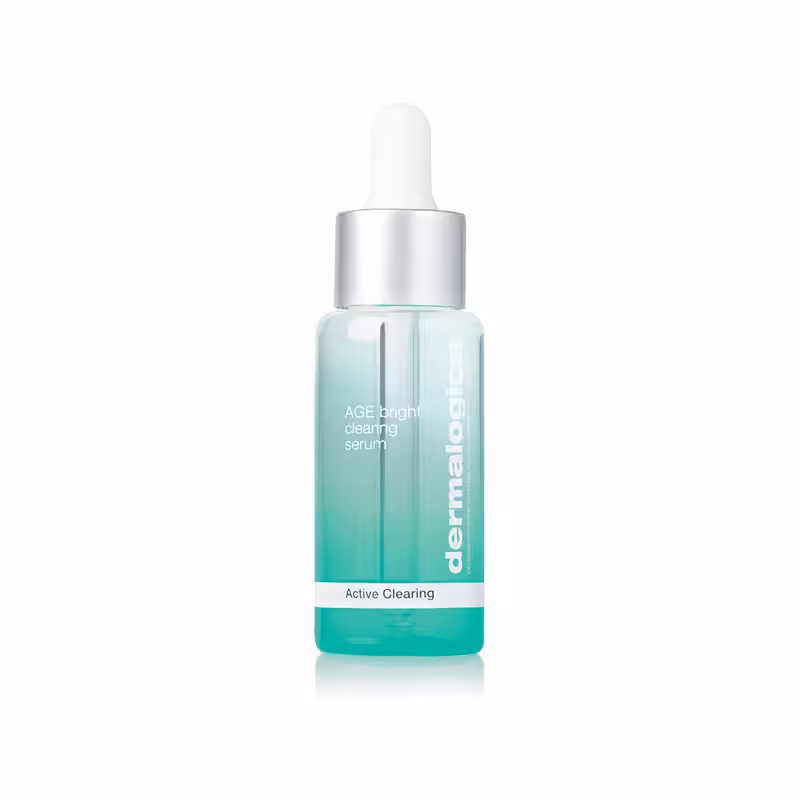 Dermalogica AGE Bright Clearing Serum to aktywne serum typu 2 w 1, które nie tylko skutecznie oczyszcza skórę, ale również pomaga rozjaśnić przebarwienia pozapalne, a także zapobiega powstawaniu ich w przyszłości, jednocześnie zmniejszając proces starzenia się skóry. Zawarty w kosmetyku kwas salicylowy redukuje stany zapalne, a unikalny kompleks AGE Bright™ Complex współpracuje z naturalnym mikrobiomem skóry w celu uzyskania czystej i bardziej rozjaśnionej skóry. Terpineol (z olejku sosnowego) i Tymol (z olejku z tymianku) pomagają zredukować ilość bakterii P.acnes (propionibacterium) oraz sebum, podczas gdy niacynamid (witamina B3) pomaga zniwelować widoczne oznaki starzenia się skóry oraz przebarwienia pozapalne. Fitoaktywne roślinne składniki z róży jerychońskiej, znane ze zdolności do przetrwania skrajnego odwodnienia, głęboko nawilżają i wygładzają skórę, a niacynamid współpracujący z grzybami Shiitake sprawiają, że skóra uzyskuje jaśniejszy, bardziej wyrównany koloryt. Benefity korzystania z serum Dermalogica AGE Bright Clearing Serum: – Unikalny kompleks AGE Bright™ Complex współpracuje z naturalnym mikrobiomem skóry, by zagwarantować jej czystość i rozjaśnić przebarwienia. – Fitoaktywne roślinne składniki z róży jerychońskiej głęboko nawilżają i wygładzają skórę. – Niacynamid współpracujący z grzybami Shiitake sprawiają, że skóra uzyskuje jaśniejszy, bardziej wyrównany koloryt. Pojemność: 30ml