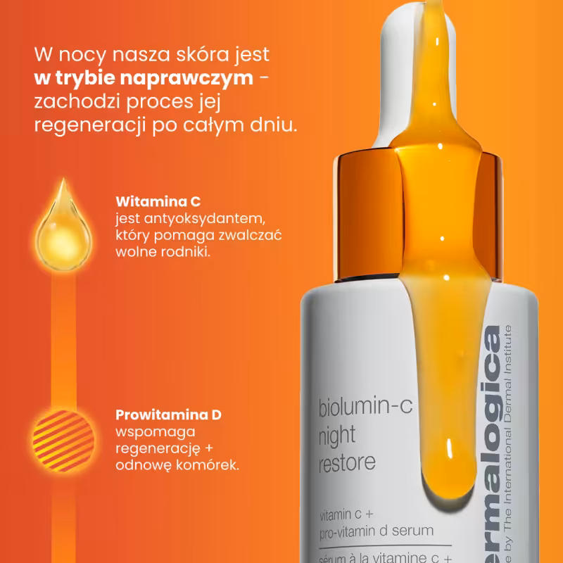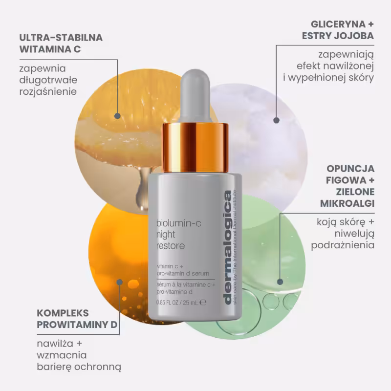 Innowacyjne serum z ultrastabilnym kompleksem witaminy C i prowitaminy D wzmacnia barierę ochronną skóry, zwiększa blask skóry w ciągu nocy i zapewnia natychmiastowe nawilżenie.