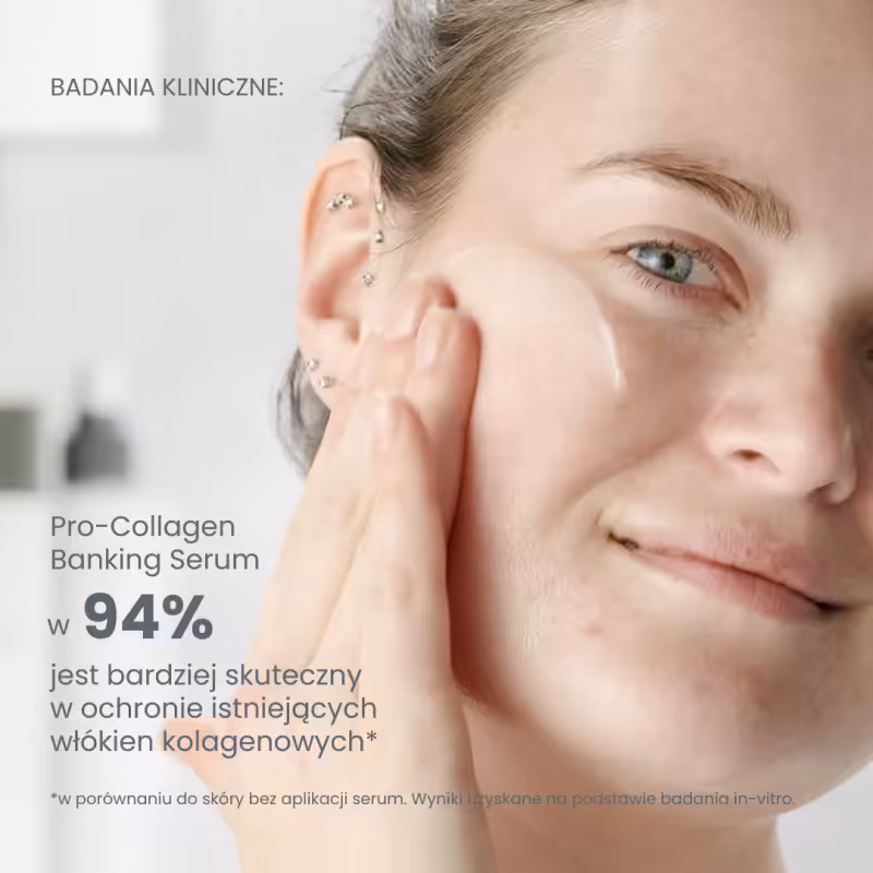 Wraz z wiekiem organizm każdego z nas z roku na rok produkuje coraz mniej kolagenu. Ekspozom i zanieczyszczenia mogą przyspieszać degradację kolagenu – prowadząc do widocznych oznak starzenia się skóry, takich jak zwiotczenie skóry, nierównomierna tekstura oraz drobne linie i zmarszczki. Pro-Collagen Banking Serum jest wypełniony aminokwasami – budulcem kolagenu. Dostarcza kluczowe składniki tam, gdzie potrzebuje ich Twoja skóra. Oferuje więcej niż ujędrnienie, tak aby pomóc chronić kolagen Twojej skóry już teraz. Rezultat: bardziej sprężysta, widocznie jędrniejsza i bardziej promienna skóra, a także zmniejszona widoczność drobnych linii i zmarszczek.
