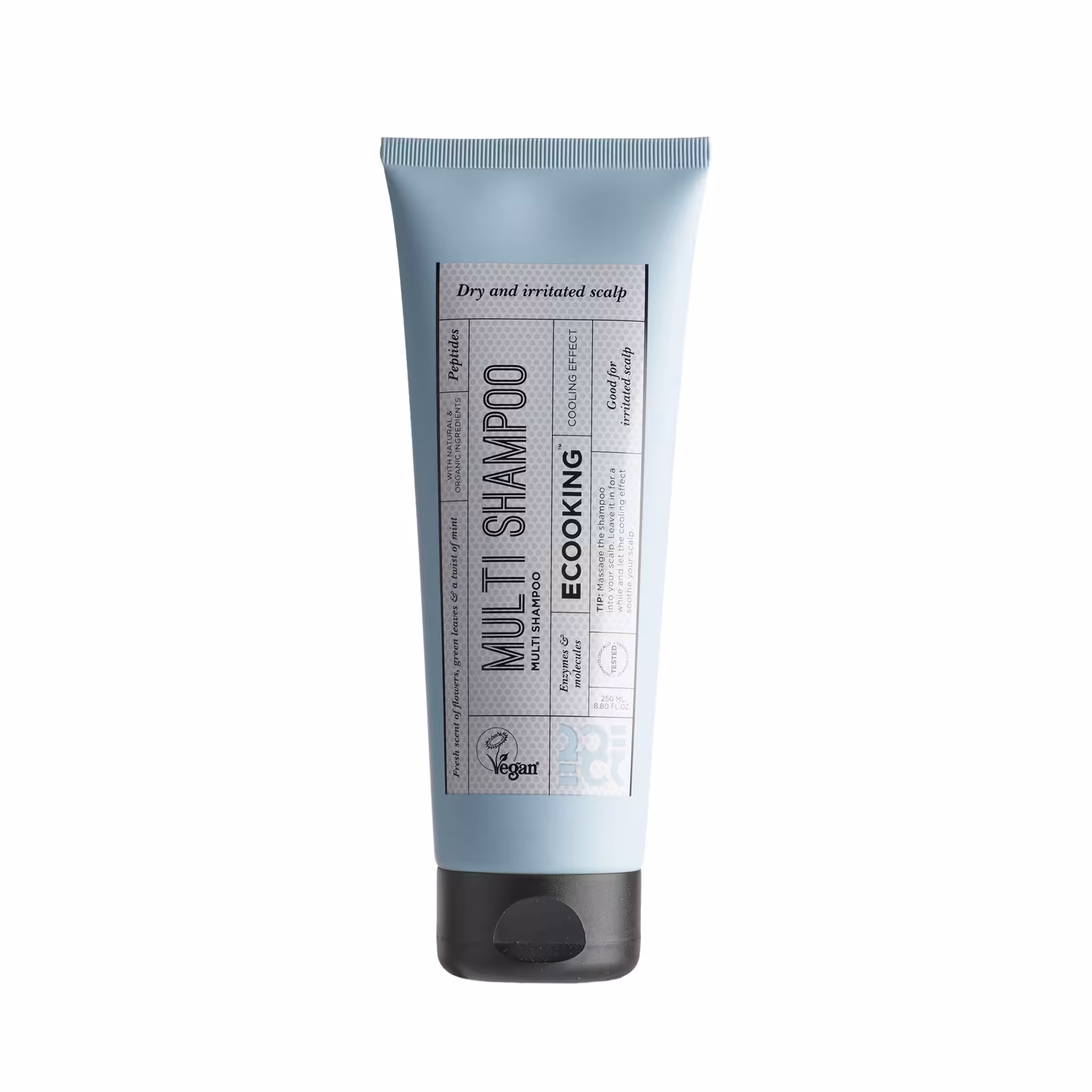 Delikatny szampon o wielokierunkowym działaniu przeznaczony do suchej i wrażliwej skóry głowy. Zawiera Capibiome, który ma korzystny wpływ na mikrobiom bakteryjny skóry głowy, łagodzi podrażnienia i zapewnia skórze przyjemny „chłodzący” efekt. Natomiast peptydy i aminokwasy, pobudzają produkcję kolagenu, a tym samym odbudowują strukturę włosów i wzmacniają pasma. Szampon chroni włosy farbowane oraz naturalny pigment włosów przed promieniowaniem UVA i zanieczyszczeniami. Puszysta piana doskonale myje włosy, a świeży zapach kwiatów i mięty sprawia że aplikacja staje się wyjątkowo przyjemna.