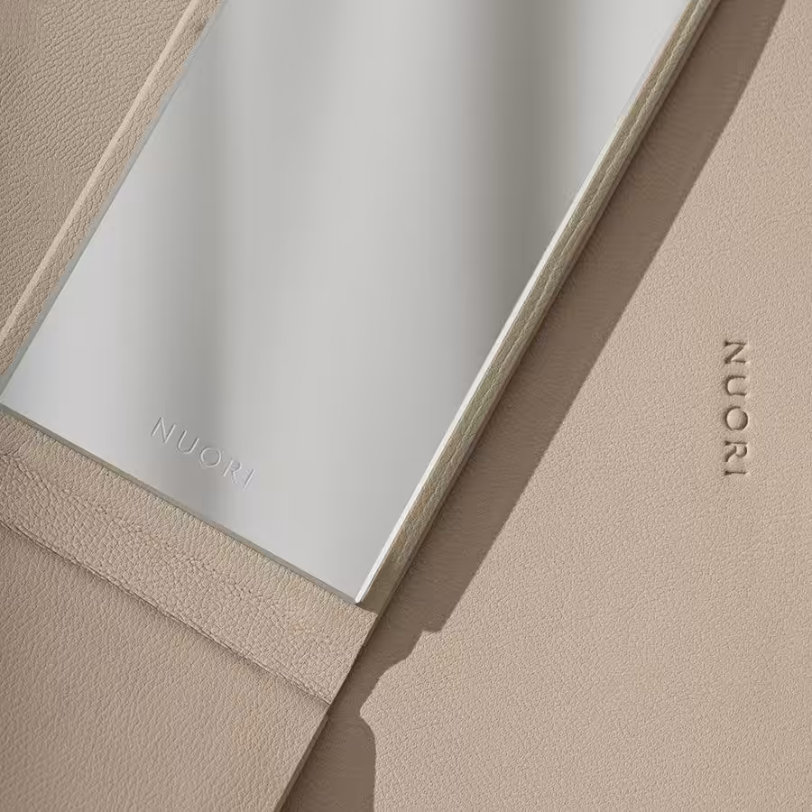 Lusterko w eleganckim etui ze skóry wegańskiej, które pełni również funkcję podstawki. Idealny do poprawek poza domem. Idealnie pasuje do każdej torebki lub zestawów podróżnych NUORI. Wysokiej jakości szkło bez zniekształceń gwarantuje zachowanie wszystkich detali. Wegańskie skórzane etui chroni lustro i może służyć jako podstawka do użytku na stole.