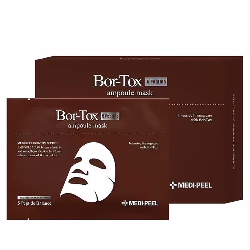 MEDI-PEEL Bor-Tox Maska w ampułce Maska w płachcie z peptydami Ampułkowa maska liftingująca z kompleksem peptydów Medi-Peel Bor-Tox Ampoule Mask do aktywnego odmładzania skóry. Maska skutecznie przywraca jędrność i elastyczność tkanek, pomaga zmniejszyć głębokość zmarszczek, napina i wzmacnia turgor skóry. Poprawia cerę, zwalcza matowość, suchość i zmiękcza powierzchnię naskórka. Maska zawiera kompleks peptydów i probiotyków, kwas hialuronowy, hydrolizowany kolagen i elastynę oraz wolufilinę. Produkt zawiera peptydy i nie jest zalecany do stosowania w czasie ciąży.