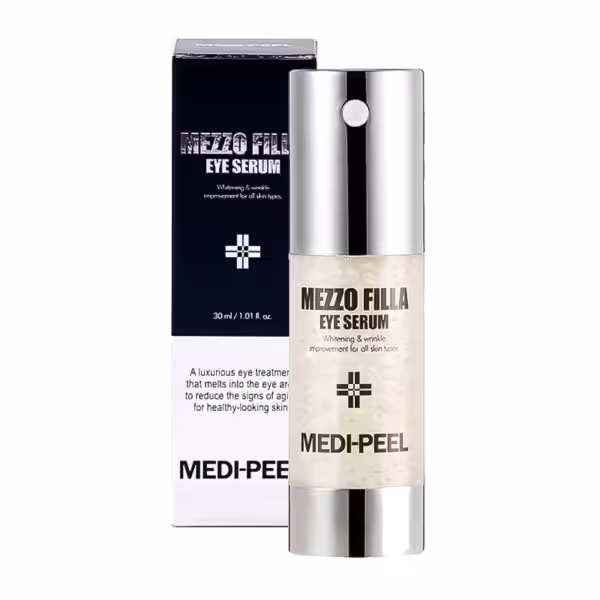[MEDI-PEEL] Mezzo Filla Serum pod oczy Serum pod oczy Odmładzające serum peptydowe na powieki ma wyraźne działanie ściągające, wygładza zmarszczki mimiczne wokół oczu i bruzdy nosowo-wargowe, działa rewitalizująco i tonizująco, zapewnia głębokie nawilżenie i delikatnie rozjaśnia cienie. Łagodna formuła produktu nie powoduje podrażnień ani stanów zapalnych. Produkt szybko się wchłania, nie obciąża i tworzy na powierzchni skóry specjalną barierę ochronną, która zapobiega utracie wilgoci i spowalnia procesy starzenia. Bezpieczny hipoalergiczny skład nie powoduje stanów zapalnych i reakcji alergicznych, delikatnie pielęgnuje skórę i łagodzi.