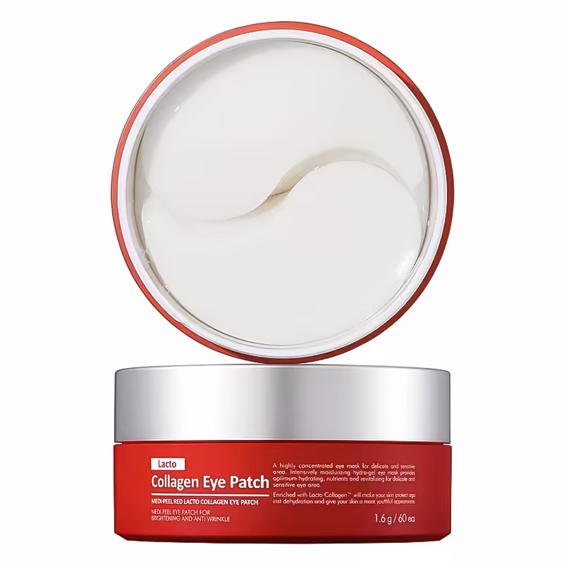 [MEDI-PEEL] Przeciwstarzeniowe plastry hydrożelowe z kolagenem, 60 szt Medi-Peel Czerwona przepaska na oczy z kolagenem Lacto Podstawą plastrów jest esencja z łączonym kolagenem o różnej masie cząsteczkowej. Technologia plastra Medi-Peel nie pozwala na odparowanie esencji i sprzyja jej całkowitej penetracji w strukturę skóry, zapewniając wyraźne działanie wygładzające i przeciwobrzękowe, intensywnie nawilżające. i odbudowa uszkodzonej skóry w okolicy oczu. Formuła zapewnia podwójne działanie, ujędrniając i uelastyczniając skórę, jednocześnie zapobiegając powstawaniu zmarszczek na cienkiej skórze oczu.