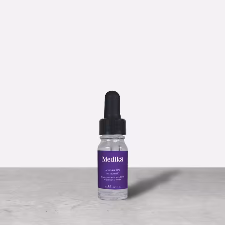 SPOSÓB UŻYCIA: Po wieczornym i porannym oczyszczeniu skóry wmasuj 6 kropel Hydr8 B5 Intense w skórę twarzy, szyi oraz dekoltu. Pozostaw do wchłonięcia przed nałożeniem kremu nawilżającego. Unikać kontaktu z oczami. W przypadku dostania się produktu do oczu, przemyć je dokładnie wodą. W razie wystąpienia podrażnienia oczu, zaprzestać stosowania. Jeśli podrażnienie utrzymuje się, należy skontaktować się z lekarzem. Stosować zgodnie z zaleceniami, wyłącznie na nieuszkodzonej skórze. Przed zastosowaniem zaleca się wykonanie testu skórnego, według instrukcji dostępnej na: www.medik8.co/patch
