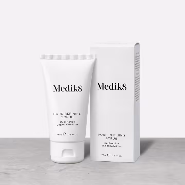 Odkryj nieskazitelną, gładką skórę dzięki Pore Refining Scrub. Ten kremowy peeling o podwójnym działaniu wykorzystuje moc chemicznych i fizycznych środków złuszczających, aby odświeżyć wygląd Twojej skóry. Kwas salicylowy i migdałowy rozpuszczają głęboko osadzone zanieczyszczenia i nadmiar sebum w celu oczyszczenia rozszerzonych ujść mieszków włosowych, podczas gdy naturalne ziarna jojoba delikatnie usuwają martwe komórki naskórka, poprawiając strukturę skóry. Aksamitna formuła zwiększa wrażliwość skóry na następne kroki Twojej codziennej pielęgnacji, pozwalając głębiej penetrować kolejnym produktom.