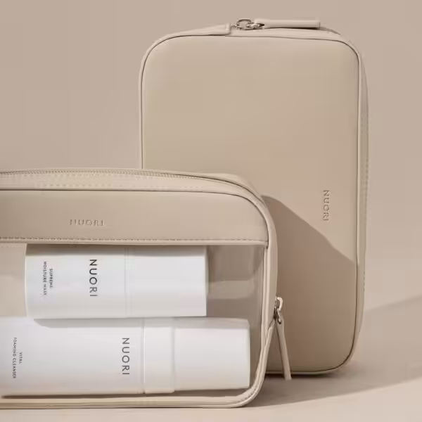 Zestaw dwóch eleganckich kosmetyczek połączonych ukrytymi magnesami. Łączy w sobie piękny skandynawski design z wyjątkową trwałością. Klasyczna kosmetyczka zaprojektowana na nowo dla współczesnego podróżnika. Przezroczysta kosmetyczka może służyć jako międzynarodowy pojemnik na płyny w podróży lotniczej.
