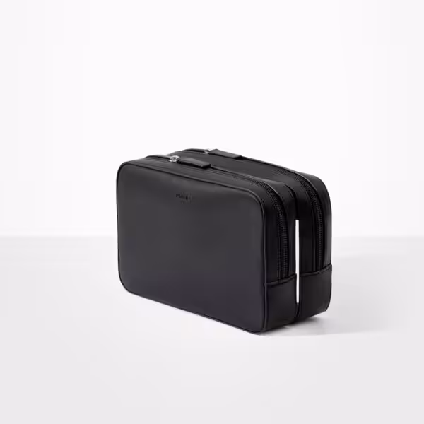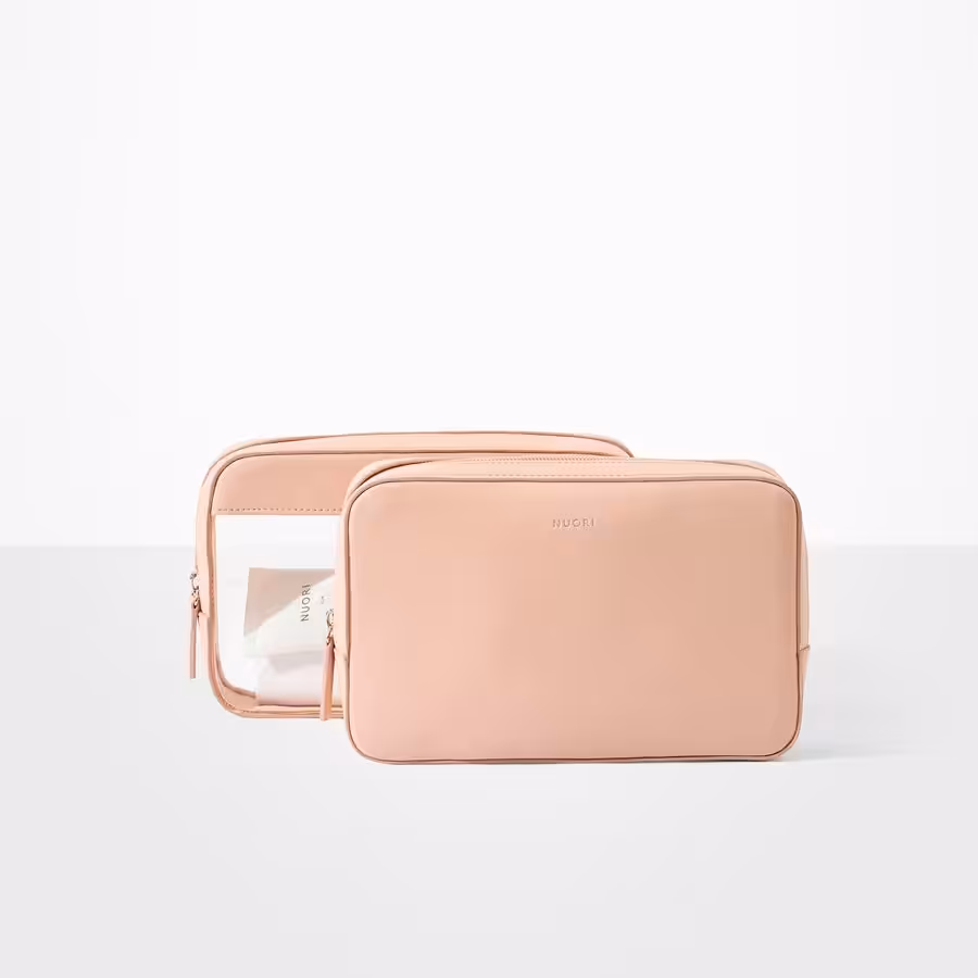 Zestaw dwóch eleganckich kosmetyczek połączonych ukrytymi magnesami. Łączy w sobie piękny skandynawski design z wyjątkową trwałością. Klasyczna kosmetyczka zaprojektowana na nowo dla współczesnego podróżnika. Przezroczysta kosmetyczka może służyć jako międzynarodowy pojemnik na płyny w podróży lotniczej.